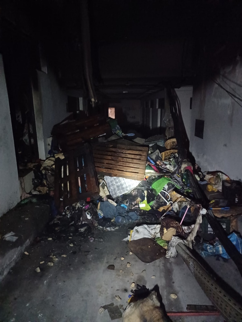 Al entrar comprobaron que el sótano estaba totalmente lleno de enseres que ocupaban la totalidad de la superficie del mismo. Además se dieron cuenta que había varios gatos en su interior. Lograron sacar a dos de ellos con vida, pero localizaron a un tercero ya fallecido por inhalación de humo.
