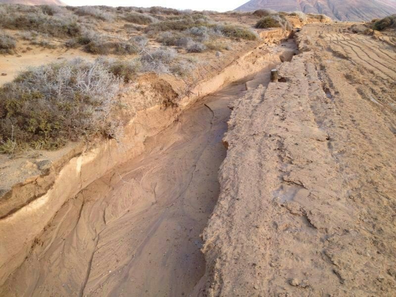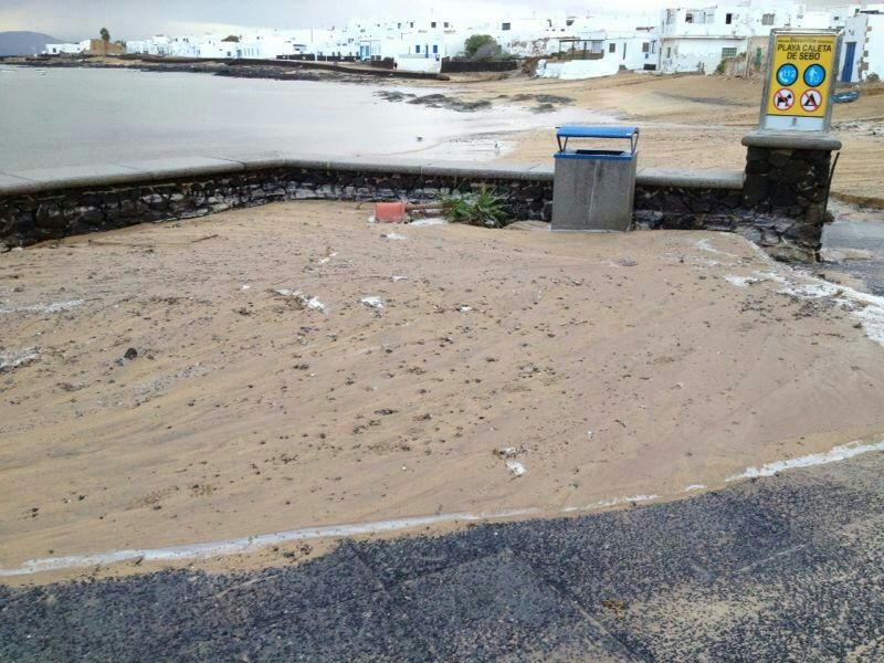 Este lunes no sólo caía el agua se convertía en triste protagonista de La Graciosa, pues la lluvia dejaba casas inundadas, el campo de fútbol desbordado y la playa hecha un lodazal, sino que además llegaba junto a un imprevisto acompañante: el granizo.