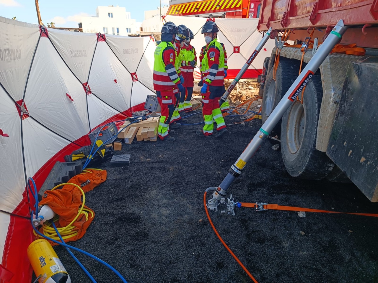 Los Bomberos aseguraron la zona, y una vez tuvieron la autorización de las autoridades competentes para llevar a cabo la operación de rescate, elevaron el camión para poder liberar el cuerpo atrapado bajo su peso.