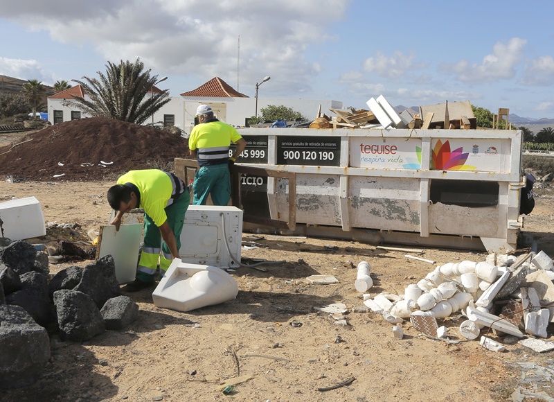 El Ayuntamiento de Teguise, a través de personal municipal, está actuando y "redoblando" esfuerzos en limpieza de espacios públicos ante la proliferación de escombreras y vertederos ilegales en determinados puntos del municipio de Teguise. Según informan desde el Ayuntamiento, en la mañana de este miércoles varios operarios procedían a la limpieza del solar situado en la salida norte de la Villa de Teguise, junto a las dependencias de la Policía Local y del área de Bienestar Social, donde habitualmente se depositan todo tipo de enseres, basura y escombros de forma irregular.