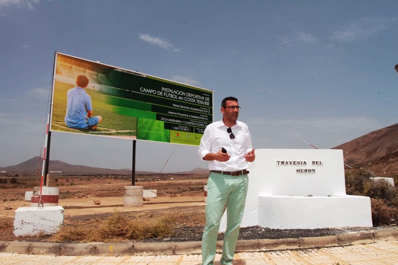 El alcalde de Teguise, Oswaldo Betancort, ha felicitado al departamento de Contratación "por el esfuerzo titánico que ha supuesto volver a iniciar el procedimiento de licitación del campo de fútbol, tras el injusto revés sufrido por la institución ante el incumplimiento de la empresa adjudicataria en la primera concurrencia, Joca Ingeniería y Construcciones".