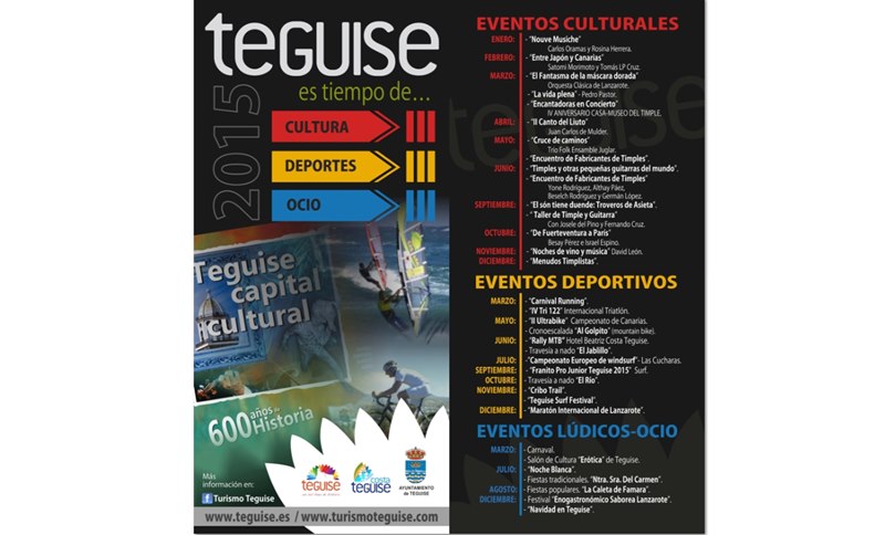 Como tarjeta de presentación, el área de Turismo de Teguise, dirigida por Antonio Callero, ha llevado material para promocionar que "es tiempo de cultura, ocio y deporte", según reza el eslógan con el que el municipio invita al turista a participar de su agenda de eventos, deportes, ocio y cultura para 2015, año en el que Teguise ha comenzado a celebrar su próximo 600 cumpleaños de historia.