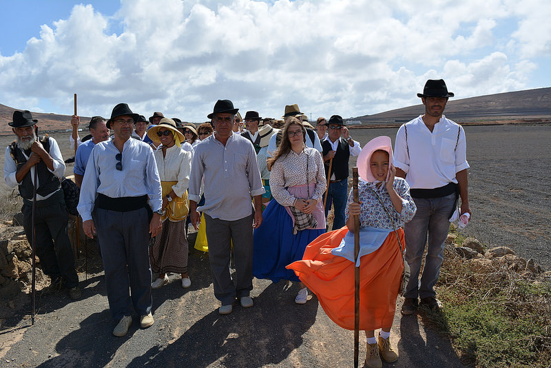 La romería de Las Nieves comenzó, como cada año, en el campo de fútbol de Teguise desde dónde los romeros se dirigen hasta la Ermita de las Nieves, lugar en el que ofrecieron los frutos de la tierra a su Virgen y donde tuvieron lugar las actuaciones musicales de parrandas y grupos folclóricos del municipio.