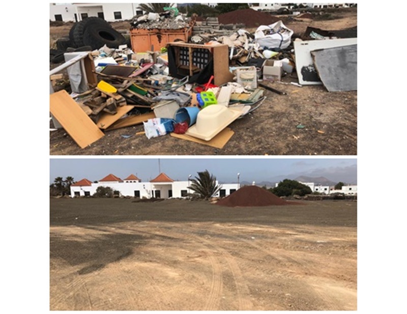 El Ayuntamiento de Teguise ha vuelto a retirar todo tipo de enseres, basura y escombros que de forma irregular y con frecuencia se vierten en la parcela situada junto a las dependencias de la Policía Local de Teguise y del área de Bienestar Social municipal, contiguos a su vez al Centro de Salud de la Villa.