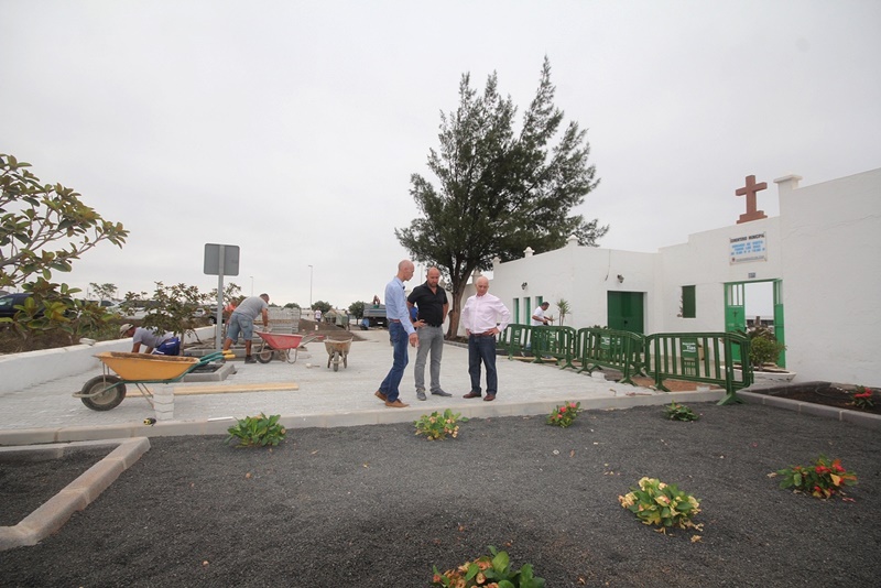 El Cementerio Municipal de Tías contará con nuevas aceras adoquinadas en su perímetro exterior, nuevas zonas verdes y una gran explanada destinada a estacimientos de vehículo que será reasfalta en estos próximos días.