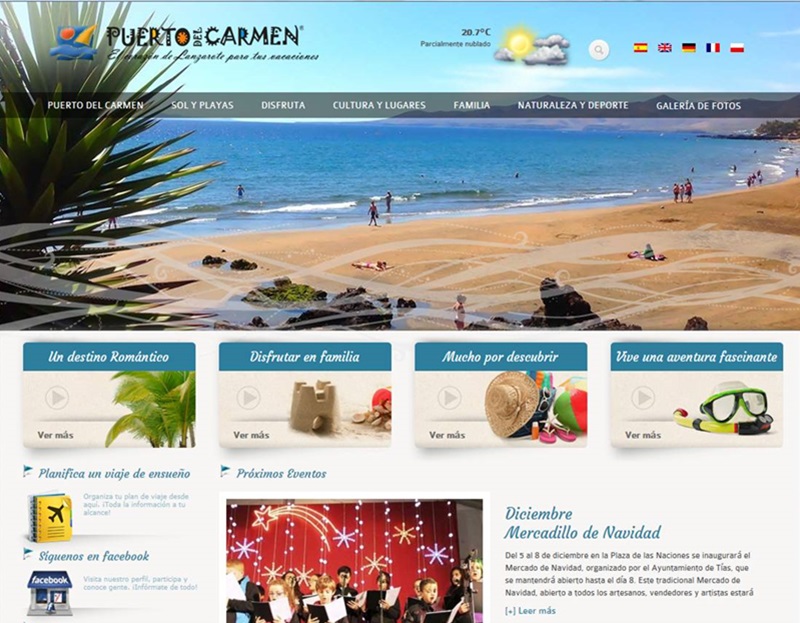Una de las novedades que presenta esta web, que está operativa desde este pasado verano, permite conocer en tiempo real información sobre el clima y la temperatura existente en las playas de Puerto del Carmen. Una de las mayores demandas que realizan los turistas por Internet es saber con antelación el tiempo que hace en ese lugar donde proyectan disfrutar de sus vacaciones.