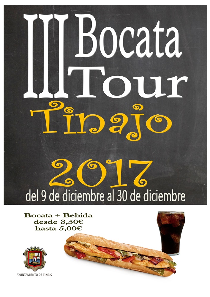 Durante el “Tinajo Bocata Tour” los clientes podrán disfrutar de un bocadillo y bebida por un precio que oscila entre los 4 y 5 euros incluyendo un ingrediente que se identifique con el municipio, en la multitud de establecimientos que integran una completa y diversa oferta hostelera como son las cafeterías, restaurantes y hamburgueserías con distintas especialidades. Se propone una variadas alternativas para el consumo de platos y opciones de comida rápida que van más allá del concepto tradicional asociada a las mismas, donde la gestión familiar, cercana y directa con el cliente, deriva en un ambiente agradable que resulta muy atractivo para el consumidor final.