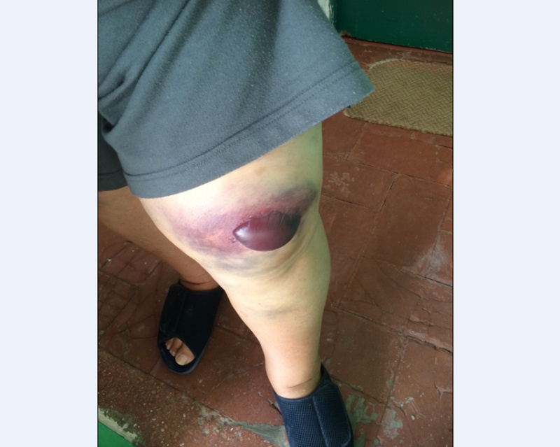 La Asociación de Vecinos de Titerroy ha vuelto a exigir al Ayuntamiento de Arrecife que arregle sus aceras, después de que una vecina de avanzada edad del barrio se cayera recientemente y sufriera una herida de consideración, tal y como se muestra en la fotografía.