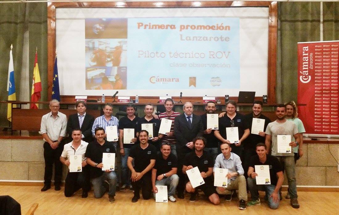 Dieciséis profesionales han conseguido sus títulos de Piloto Técnico de ROV, clase observación. Una formación inédita en la isla organizada por la Cámara de Comercio de Lanzarote e impartida por la empresa Qstar en el Instituto Marítimo Pesquero de Arrecife.