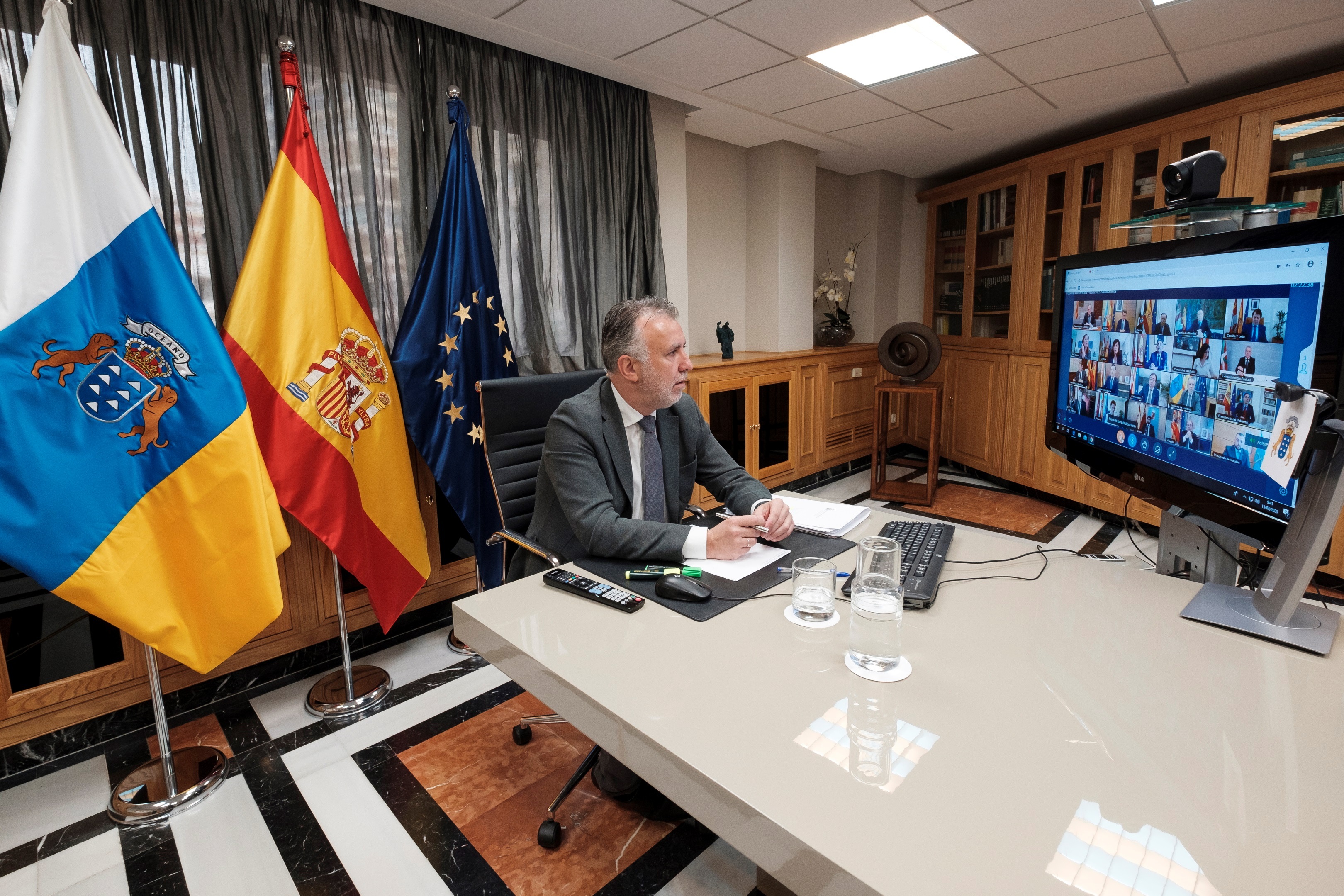 El presidente de Canarias ha intervenido en la reunión convocada esta mañana por Pedro Sánchez con todos los presidentes autonómicos por medio de videoconferencia. En esa reunión de coordinación, celebrada tras el decreto de estado de alarma para la contención de la propagación del Covid-19, Ángel Víctor Torres ha trasladado a Pedro Sánchez las medidas necesarias para que Canarias afronte esta "situación extraordinaria". Además, el presidente canario ha actualizado los datos de incidencia del Covid-19 en las Islas, donde la evolución de infectados por el virus "está aumentando de una forma homogénea y no exponencial, de momento", destacó.