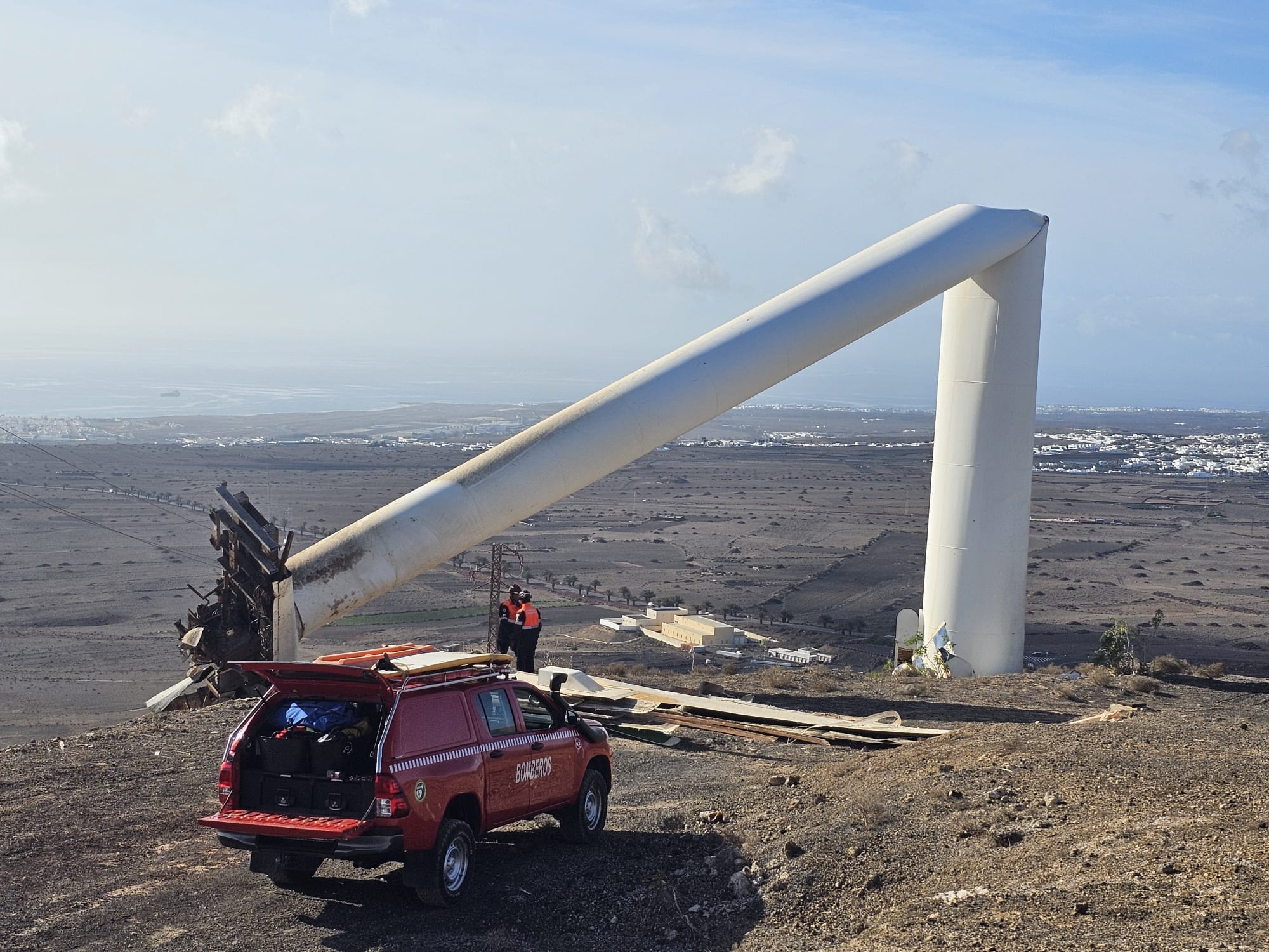 La Consejería de Transición Ecológica y Energía del Gobierno de Canarias ha actuado de forma inmediata en el parque eólico Montaña Mina, en el municipio de San Bartolomé, en la isla de Lanzarote, para acabar con años de dejadez del anterior Gobierno. El actual ejecutivo trabaja en la retirada del aerogenerador que sufrió una caída este martes, 16 de enero, y que provocó la rotura de una línea de distribución eléctrica, dejando sin luz durante cinco minutos a unas 2.000 personas.