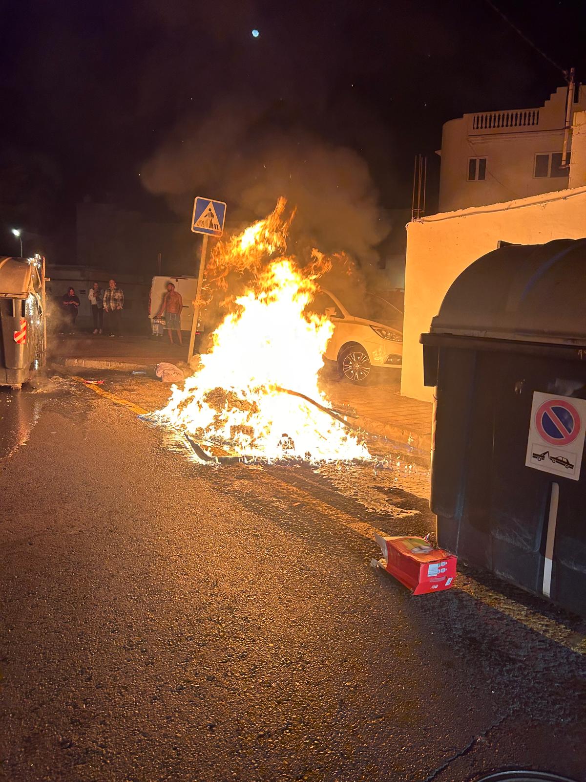 Una vez finalizado el servicio, los Bomberos fueron alertados de otro incendio en la calle Nicaragua, en esta ocasión un contenedor de basura orgánica, que también estaba ardiendo en su totalidad. Se sofocó el fuego y fueron llamados para actuar en un tercer incendio, en esta ocasión en la calle Castillo de Las Coloradas, donde ardía un contendor de reciclado de cartones.