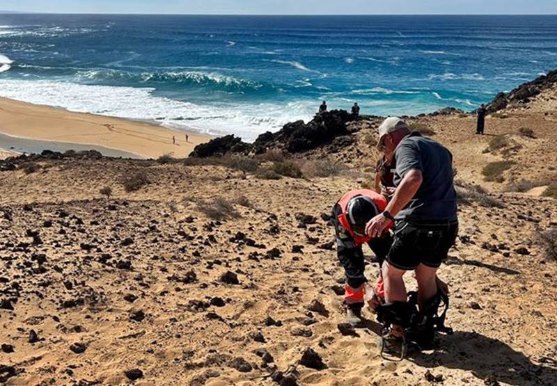 Al llegar al lugar, se constató que debido al desnivel y la naturaleza arenosa del terreno, las tres personas se encontraban atrapadas a mitad de la montaña. En coordinación con el personal de Medio Ambiente, se implementó un descenso con cuerdas para asegurar la evacuación segura de los turistas.