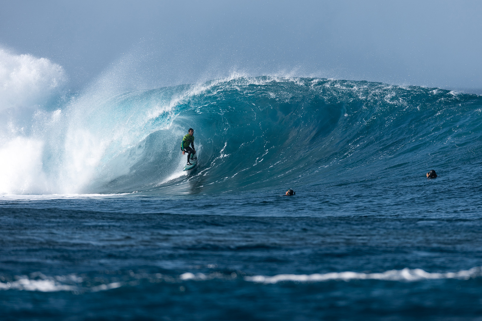 También han destacado los canarios Luis Díaz y Yael Peña liderando en sus respectivas series. 'La primera serie fue difícil, pero termino muy contento. Está previsto que las condiciones de olas continúen mejorando a lo largo del día, así que deseando volver al agua', comentaba el grancanario Luis Díaz. Por su parte, el francés Marc Lacomare aprovechando al máximo las buenas condiciones se hacía con una ola de 8.17 puntos.