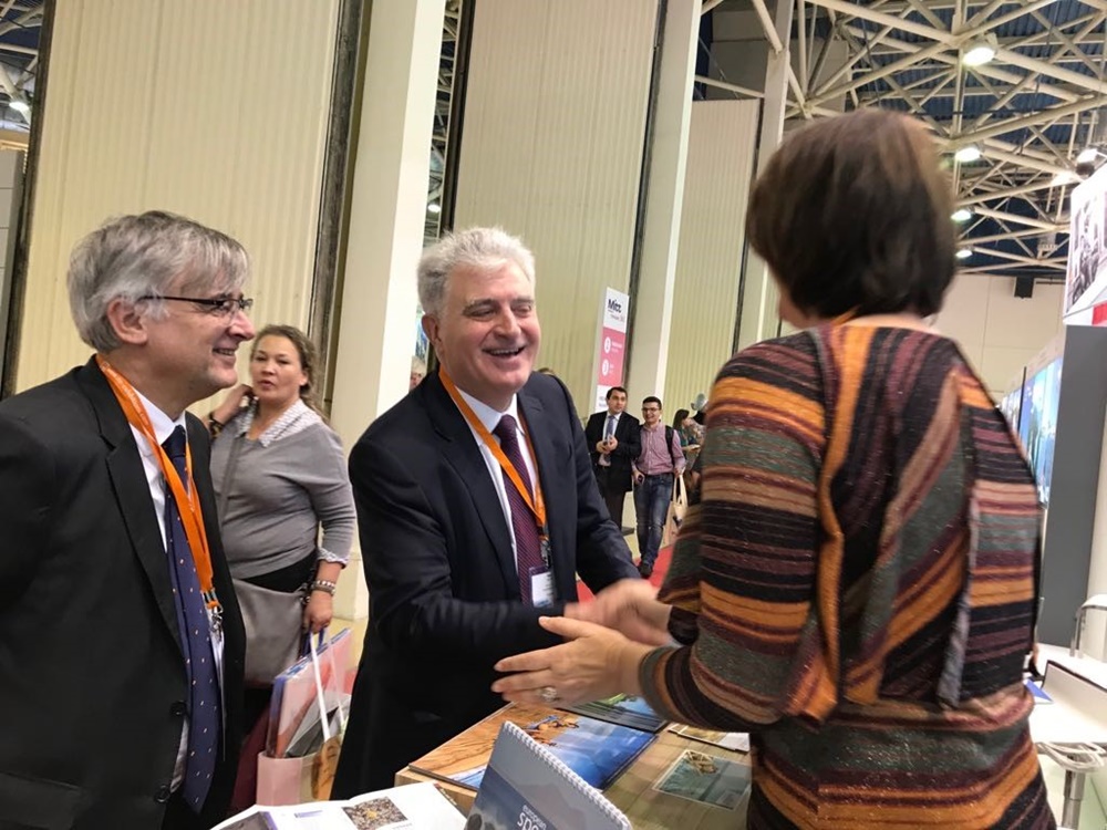 El stand promocional de Lanzarote y las Islas Canarias contó con la visita del embajador de España en Moscú, Ignacio Ybáñez, y el consejero de la Embajada y director de la Oficina Exterior de Turespaña en Moscú, Luis Boves.