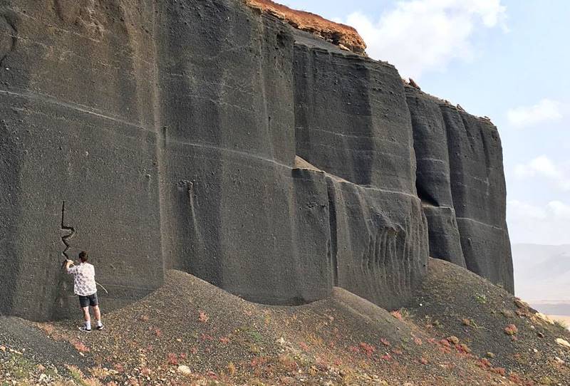 El "artista" en cuestión ha utilizado un artilugio tan rudimentario como dañino para la pared de rofe. Si bien es cierto, el humano explotó comercialmente este lugar geológico, muchos critican que ahora, siguiendo la moda de dañar el patrimonio, se vuelva a dañar un lugar que es ya un vestigio de lo que algún día fuimos.