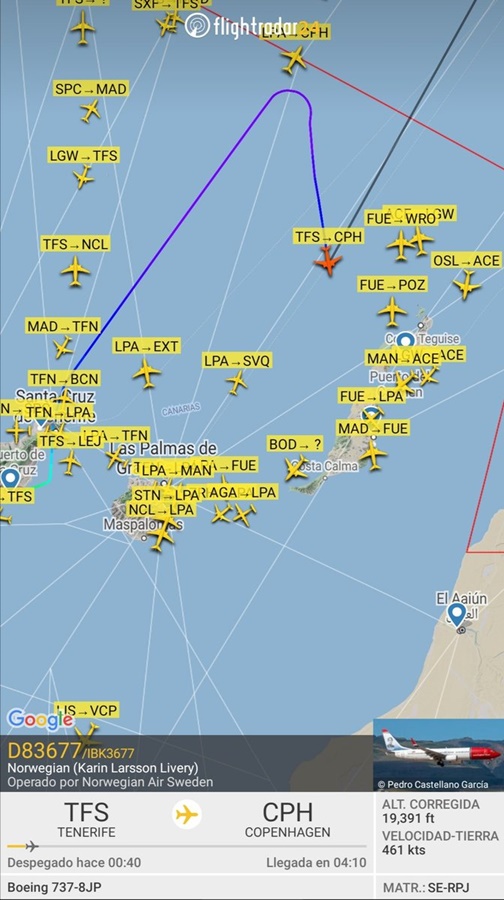 Vuelo de #Tenerife Sur a Copenhague se desvía a #Lanzarote por pasajero con problemas médicos a bordo (posible infarto). Máxima prioridad. Se recorta la ruta en lo posible y se coordina atención médica en tierra. #SafetyFirst #Trabajoenequipo