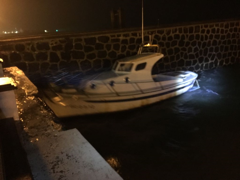 La embarcación tipo yate fue amarrada con un cabo por lo bomberos y por el patrón de Salvamar que se personó también en el lugar y lograron amarrarlo, alejándolo de la pared donde estaba golpeando con más fuerza para ponerlo en un lugar donde fuera menos dañado.