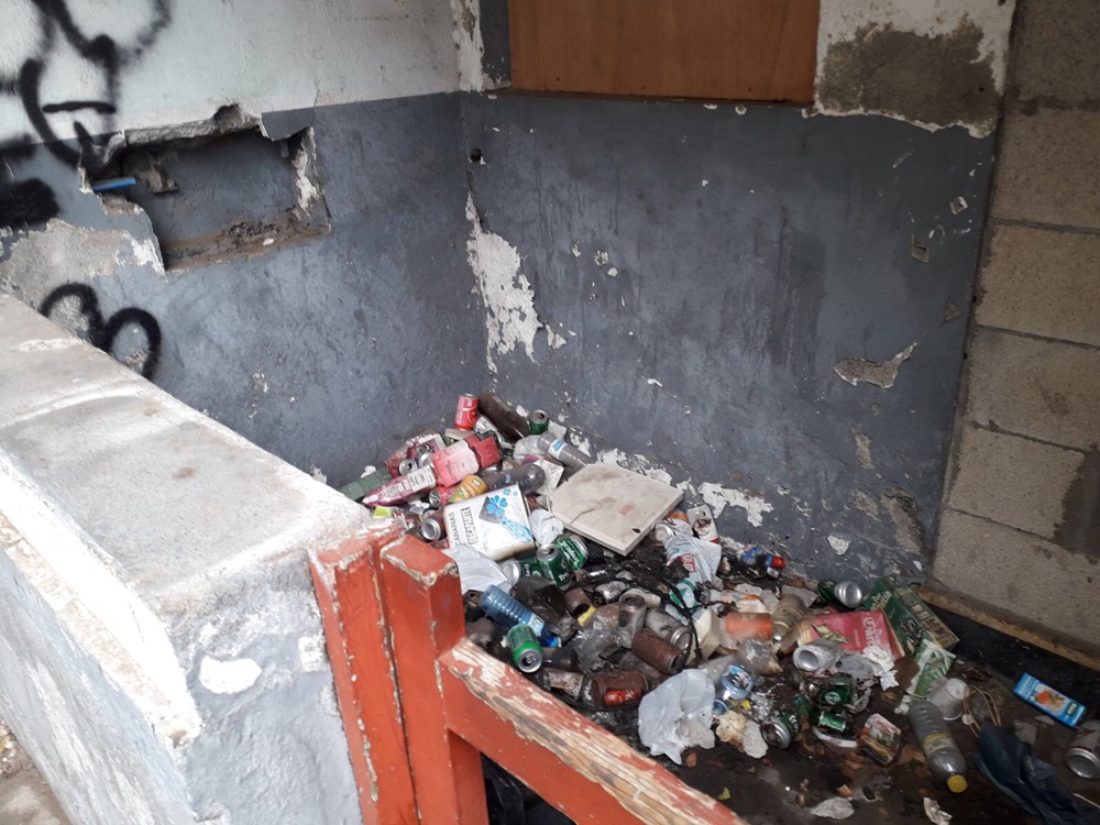 El porche de una casa de la capital se ha convertido en un auténtico basurero