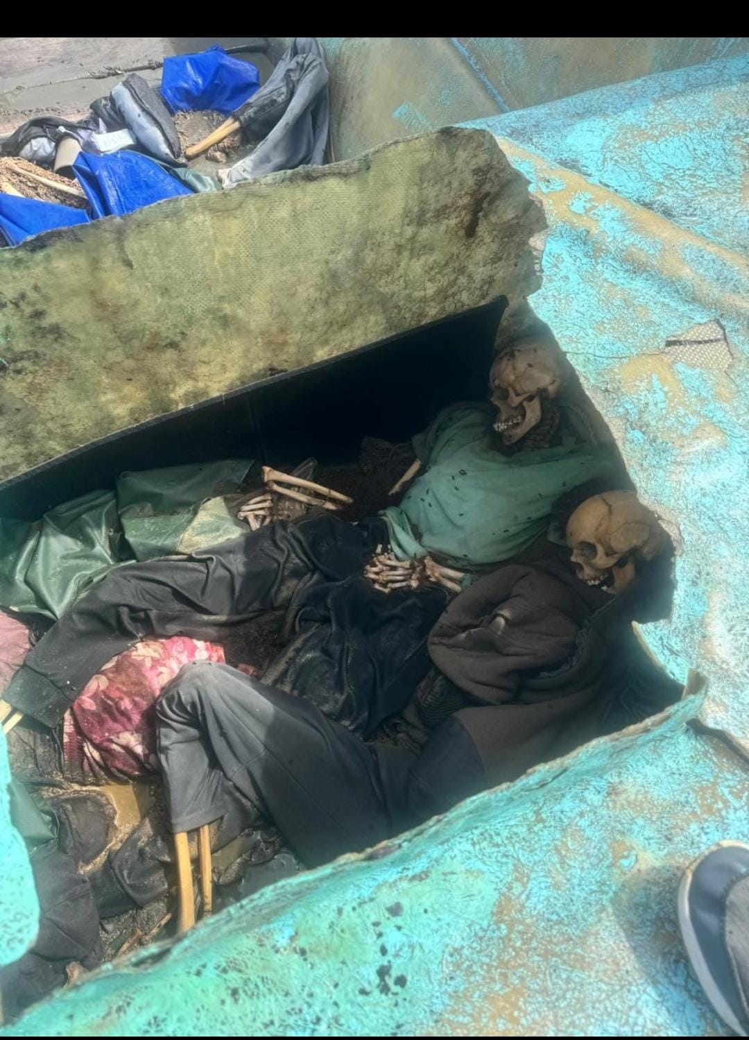 Los restos óseos corresponden a personas procedentes de África, concretamente de Senegal y Mauritania, según se desprende de la documentación hallada junto a los cuerpo como verán en esta fotografía publicadas por el Dirio Libre.