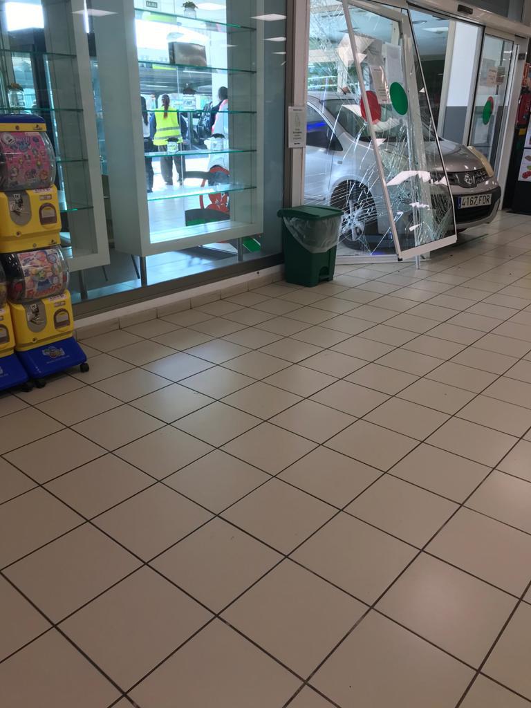 Por suerte todo quedó en un susto porque no ha habido ninguna persona dañada. Así se empotró un vehículo en la jornada del lunes en el Hiperdino de Valterra ante el estupor de los allí presentes.