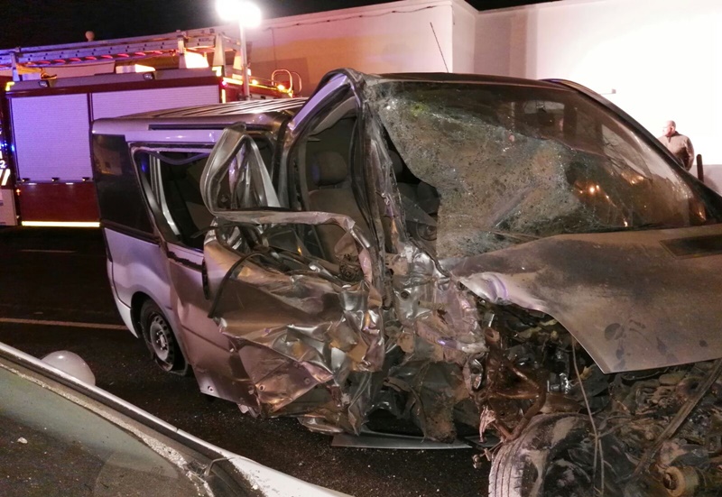 El concejal de Somos Lanzarote en el Ayuntamiento de Teguise, Ayoze Callero, sufrió un aparatoso accidente de circulación este lunes por la noche en la carretera de Tinguatón-Tinajo, al chocar su furgoneta contra la pared de una vivienda. El coche, tal y como se contempla en las fotografías, quedó gravemente dañado.