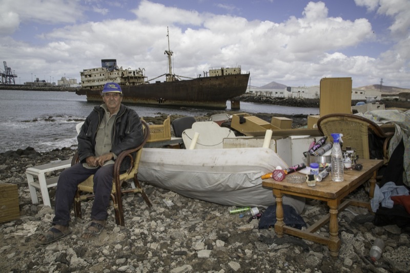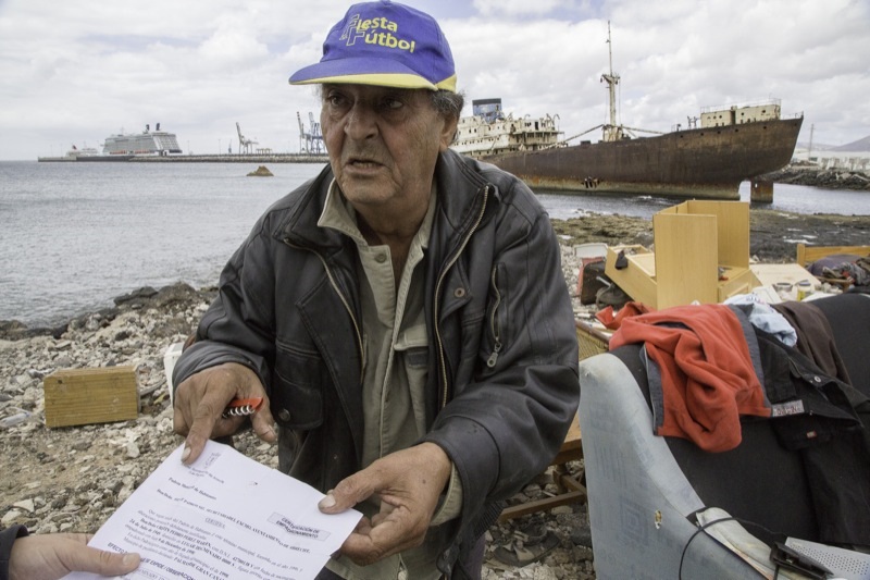 Por ello, tan sólo pide un pequeño cuarto donde dormir y, más que nada, dejar sus cosas, ya que no tiene recursos para alquilarse una vivienda. Según asegura, se quedó en paro hace dos años y, ahora, estaba cobrando la ayuda de 420 euros, que este mes se le acabará. “El último trabajo que hice fue precisamente para el Ayuntamiento de Arrecife, limpiando grafittis. Después me fui al paro y ahora cobraba esta ayuda, pero ese mes es el último que la recibiré”, explica.