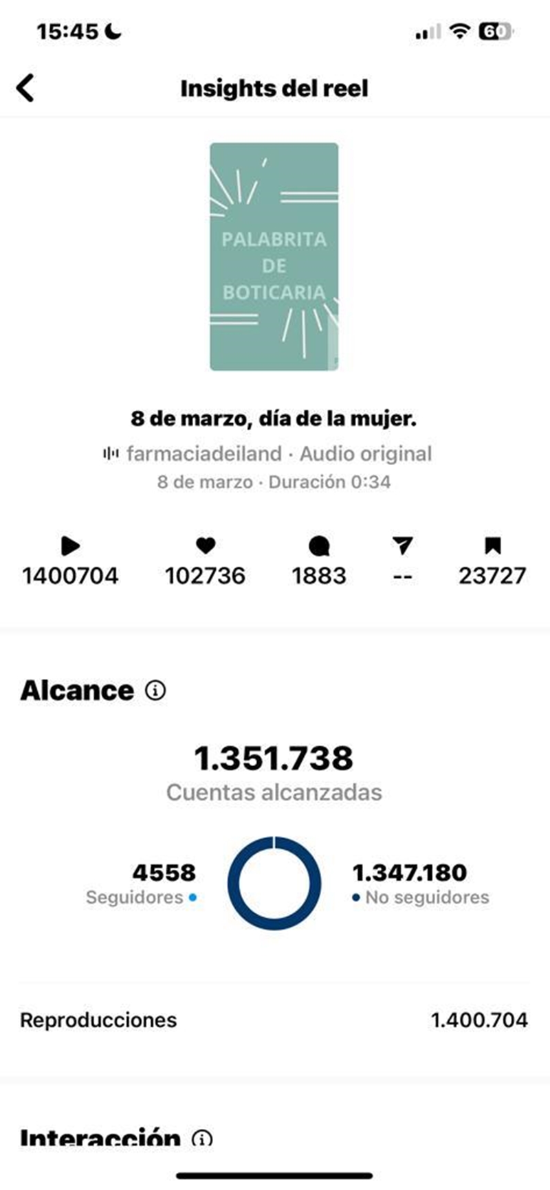 Tal ha sido la repercusión del video, de apenas 30 segundos de duración, que la cuenta de Instagram de la farmacia del Deiland pasó tras su publicación, y en apenas un par de días, de contar con algo más de 2.000 seguidores a casi 12.000. Además, ha generado cerca de 1.900 comentarios y ha sido compartido más de 3.500 veces.