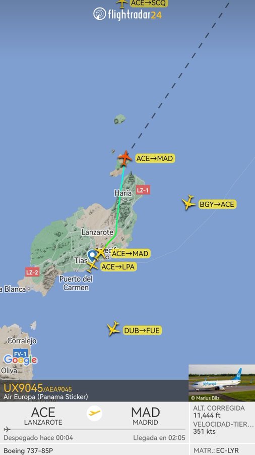 Acto seguido señalaban en un nuevo mensaje que "Sale ahora de nuevo el vuelo desde Lanzarote hacia Madrid y trataremos de recortarle su ruta al máximo para recuperar parte del tiempo perdido. Esperamos que el pasajero se recupere y todo quede en un susto".