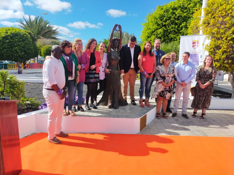 La directora del Instituto Canario de Igualdad (ICI), Kika Fumero, y el alcalde de San Bartolomé, Isidro Pérez, inauguraron este martes la escultura homenaje a todas las víctimas y resilientes de las violencias machistas realizada por la artista Cintia Machín Morín.