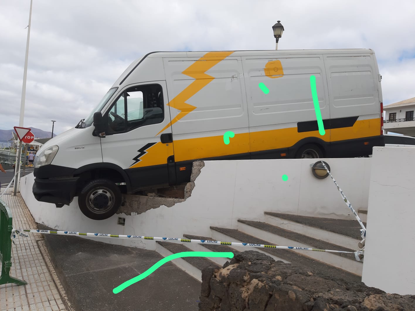 Un buen susto es lo que se han llevado los viandantes que se encontraban en Puerto del Carmen, en la zona cercana a Correos y al Centro de Salud, debido a que una furgoneta chocó contra un muro, atravesándolo.