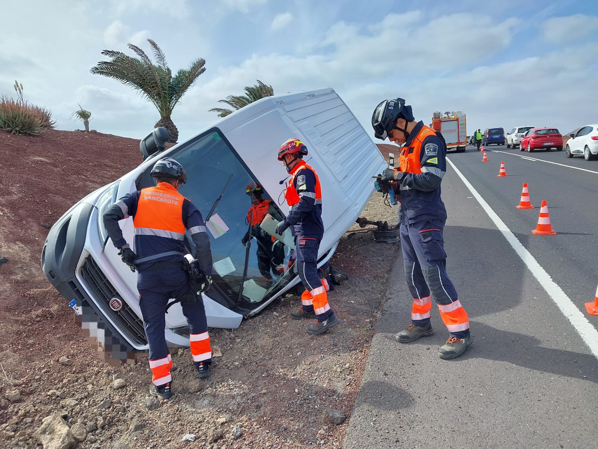 Además de los Bomberos, participaron en el suceso agentes de la Policía Local de Tías, agentes de Guardia Civil y sanitarios del SUC.