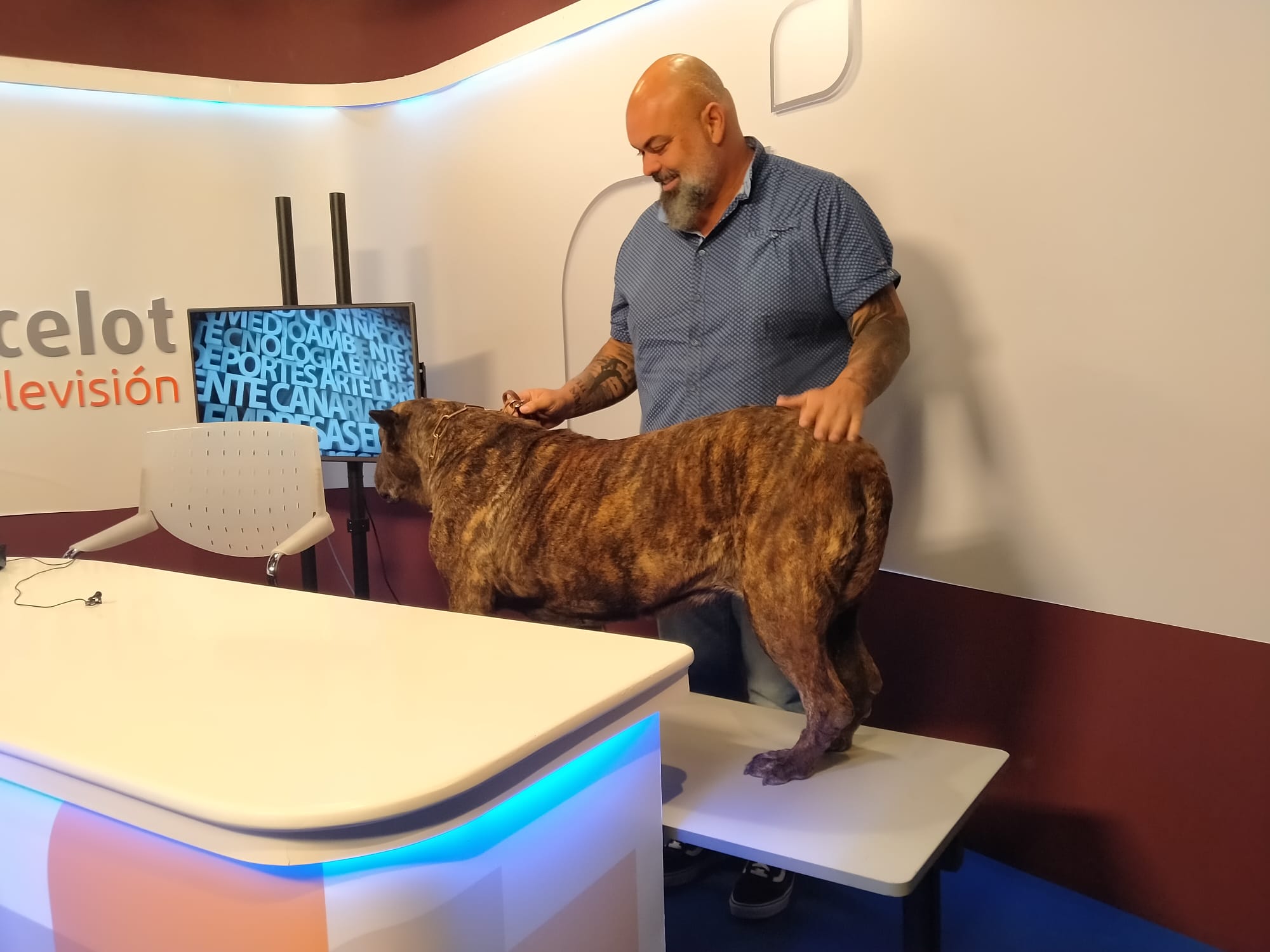 Este jueves, el plató de La Entrevista Del Día ha tenido una visita poco habitual. Ankara, una presa canario que ha sido recientemente galardonada en el Campeonato de Canarias, ha acompañado a los dos invitados del programa: el veterinario Laureano Álvarez y José Antonio Machín, presidente del Club Lanzaroteño del Presa Canario. Ambos han explicado los orígenes y características de esta raza y también han comentado cómo se puntúa en las exhibiciones.