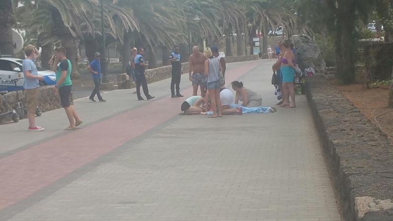 Una joven de 17 años y nacionalidad irlandesa resultaba herida en la cabeza hacia las 13 horas del miércoles cuando circulaba en moto eléctrica junto a un grupo de amigos, turistas extranjeros, por el paseo de Playa Bastián en Costa Teguise.