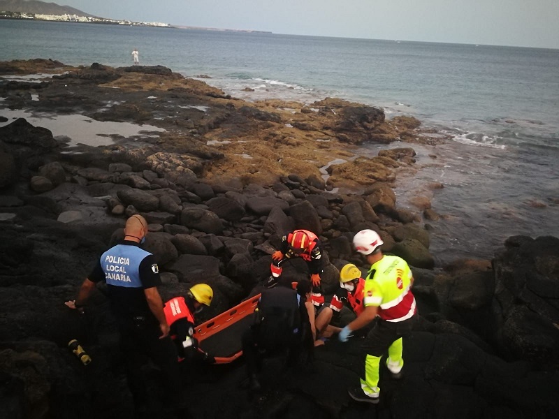 Los bomberos rescataron en la tarde noche de ayer, martes, a una mujer de unos 50 años de edad que se había precipitado por unas rocas cerca del Faro de Pechiguera en Playa Blanca.