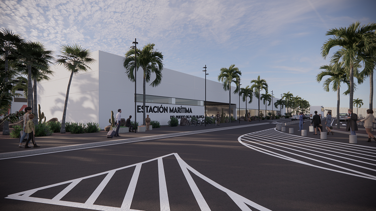 El diseño y construcción de la nueva estación es obra del estudio de arquitectura canario Romera y Ruiz Arquitectos. Un edificio compuesto de piezas de hormigón prefabricado, grandes cristaleras de vidrio y una cubierta formada por una serie de planos inclinados. “Este peculiar diseño permite la apertura de franjas horizontales a modo de lucernarios que aportarán al interior de la estación luz y ventilación natural”, afirma el director gerente de Puertos Canarios Manuel Ortega.