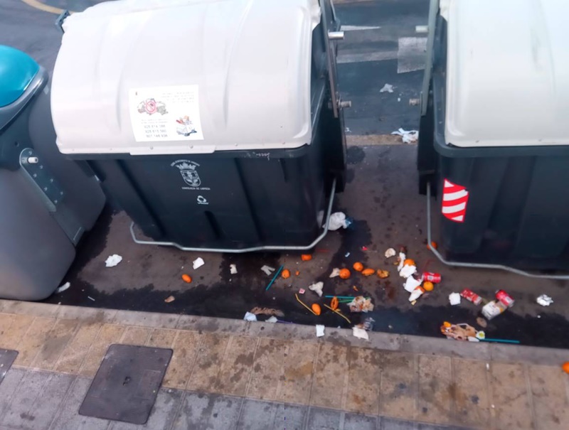 La situación de falta de limpieza en la ciudad de Arrecife, lejos de mejorar, empeora, tal y como refleja el incremento de las quejas de los vecinos. La última ha llegado a la alcaldesa en forma de escrito oficial, tras haberla remitido al concejal de Limpieza del municipio sin obtener respuesta. En dicho escrito, un vecino solicita el cambio de ubicación de los “contenedores de basura que pusieron justo delante de las ventanas del Edificio Colombia (esquina C/Colombia, C/Teruel), debido a los olores y por las condiciones de insalubridad que genera debido a la proximidad de la ubicación de los citados contenedores con las ventanas de la vivienda.