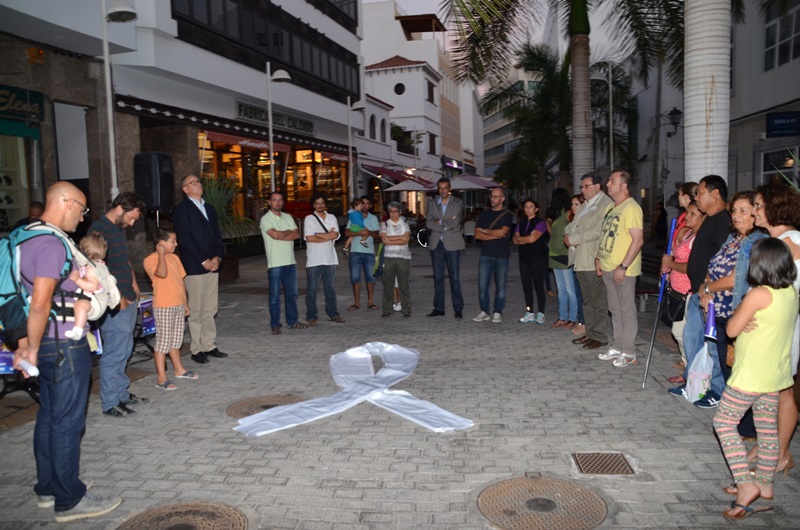 Allí se formó un círculo entre los hombres presentes alrededor de un lazo blanco que se colocó en el centro, en recuerdo de las víctimas y como símbolo de repulsa por los asesinatos machistas. Rosmen Quevedo, futbolista de la Unión Deportiva Lanzarote, fue el encargado de leer el manifiesto.