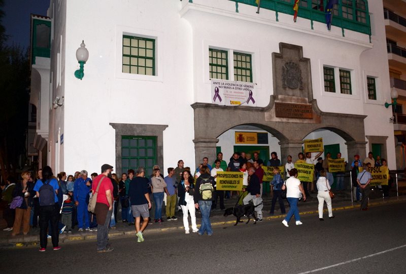 Nueva concentración contra las prospecciones, en la que esta vez tan sólo se dieorn cita unas 50 personas, ante la Delegación del Gobierno en Arrecife.