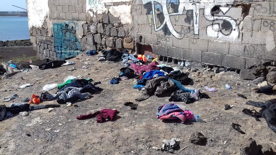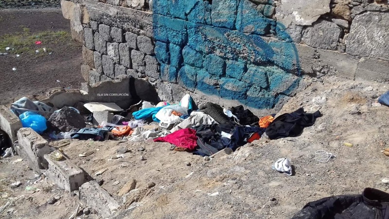 Las ropas que traían los inmigrantes que llegaron a la costa de la capital de Lanzarote, en una patera tipo zodiac, han sido encontradas cerca de la antigua fábrica de Rocar, como informa a Isla Sin Corrupción la persona que envía las fotografías a este perfil de Facebook, con el siguiente texto informativo: "Trasera de la Rocar. Desembarcaron, se cambiaron de limpio y desaparecieron. Y nadie vio nada. Unas 20 personas como mínimo, por la ropa que hay dispersa por la zona...".
