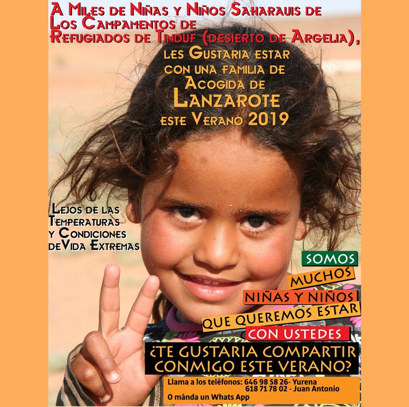 Por ello, desde el grupo de trabajo de esta asociación en Lanzarote, en colaboración con el Colectivo Saharaui de Lanzarote, hacemos un llamamiento a la población de Lanzarote para que acojan al mayor número de niños saharauis y compartan con ellos un verano de emociones, interculturalidad y solidaridad.