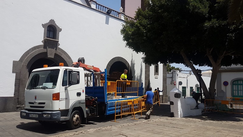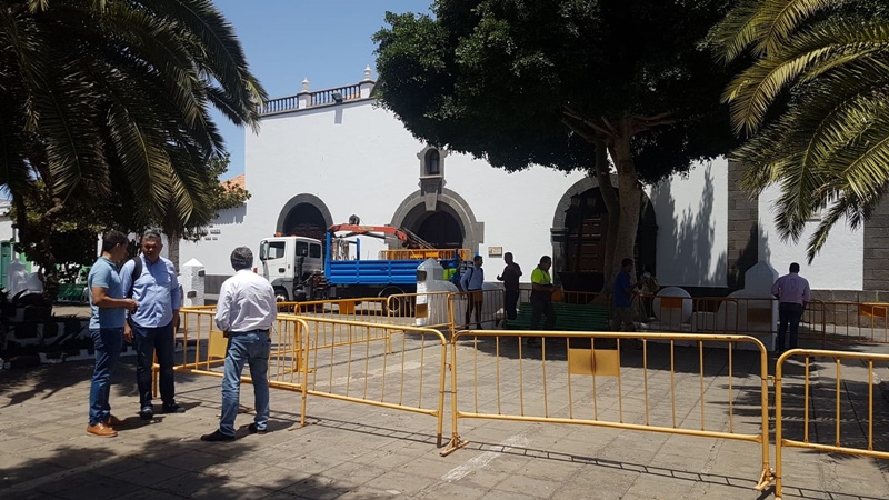 La Concejalía de Seguridad y Emergencias del Ayuntamiento de Arrecife, bajo la dirección del concejal Eduardo Placeres Reyes, ha procedido en la tarde de este viernes al vallado de una zona de la Plaza de Las Palmas, más conocida popularmente como la plaza de la iglesia de San Ginés.