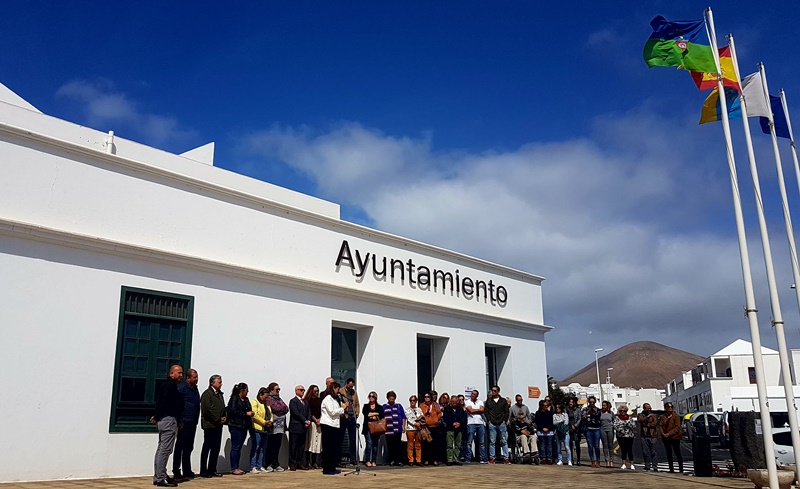 El acto, que contó también con la asistencia de los trabajadores del Ayuntamiento de Tías, miembros de la Corporación Municipal, el alcalde Pancho Hernández, el teniente de alcalde, Amado Jesús Vizcaíno, la concejal del Área de Bienestar Social y la Familia, Aroa Pérez, el concejal de Economía y Hacienda y Recursos Humanos, Ramón Melián, y la concejal de Urbanismo y consejera de Obras Públicas del Cabildo, Saray Rodríguez Arrocha, ha tenido lugar este mediodía junto al edificio del Ayuntamiento para demandar mayores implicaciones de la sociedad, en su conjunto, que abogue por la igualdad de género y se evite la discriminación, por razón de sexo, en las oportunidades laborales y sus retribuciones económicas, y otras reivindicaciones sociales.