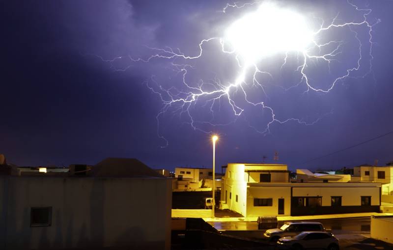 A partir de las 21:00 horas de este pasado sábado, el cielo de Lanzarote comenzó a ser testigo de imágenes espectaculares debido a las rayos que avisaban de la inminente tormenta eléctrica.