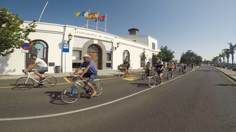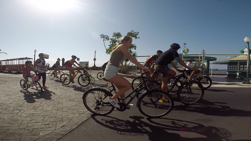 Decenas de personas participaron del paseo en bicicleta por el litoral de Arrecife organizado en marco de las fiestas patronales