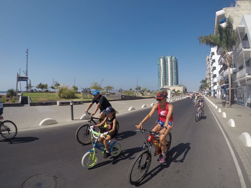 Los ciclistas, entre los que se encontraban familias y personas de distintas edades pasaban por el Marina Colón hasta finalizar de nuevo en el Charco de San Ginés.