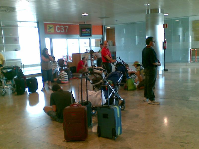 El avión debía partir a las 13:30 horas. A las 12:20, si se consultaba telefónicamente a la compañía, la información que daban era que el vuelo saldría en horario. Ya en el aeropuerto de Barajas, poco antes de las 13, el monitor indicaba como hora de embarque las 12:51; es decir, en horario. Y el avión ya estaba frente a la puerta correspondiente. Pero esa hora pasó, y en la puerta de embarque no estaba ni el personal. Sobre las 13:00, nueva hora de embarque, las 13:14. Esa hora también pasó, y nada.