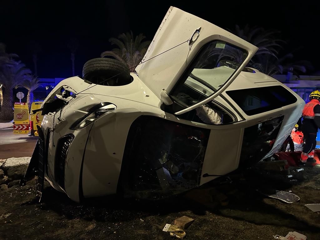 Los bomberos consiguieron liberarlo y fue evacuado en una ambulancia medicalizada del SUC para su traslado el Hospital José Molina Orosa. El servicio concluyó con los trabajos de colocación del coche en posición horizontal y el acondicionamiento de la carretera.