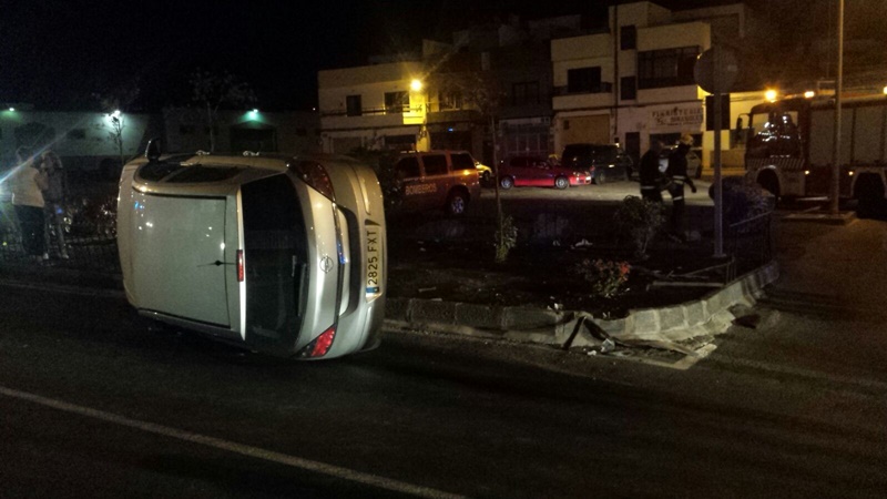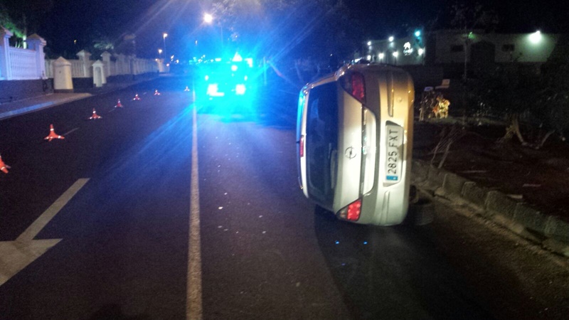 La Policía Local asistía en la noche del sábado al domingo 11 de octubre al vuelco de un vehículo en la calle García Escámez de Arrecife. Hacía la una de la madrugada, el conductor del mismo, que multiplicaba por seis la tasa de alcoholemia permitida, derrapaba a la altura de los cuarteles.