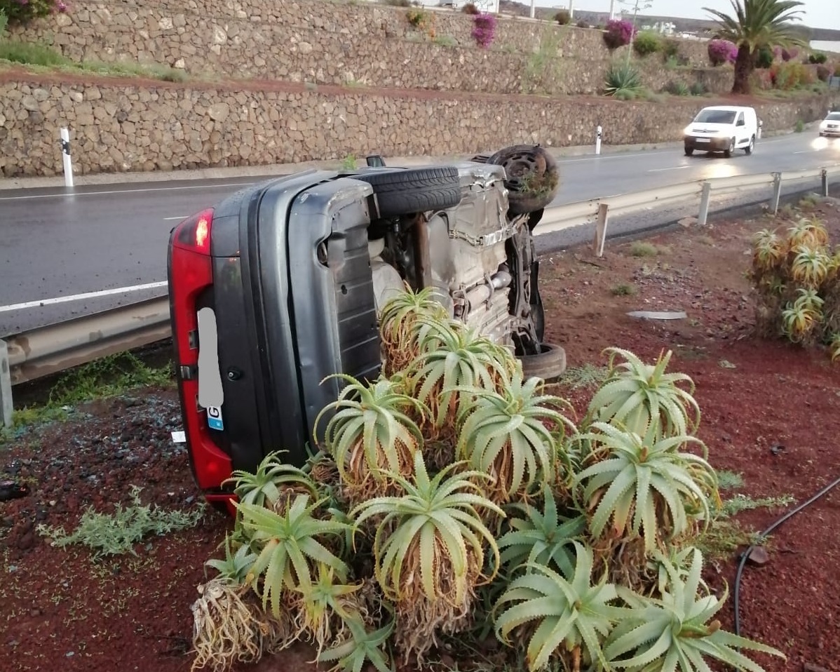 Este sábado ha volcado un turismo en la LZ-2, a la altura de Indelasa, dirección a Puerto del Carmen.